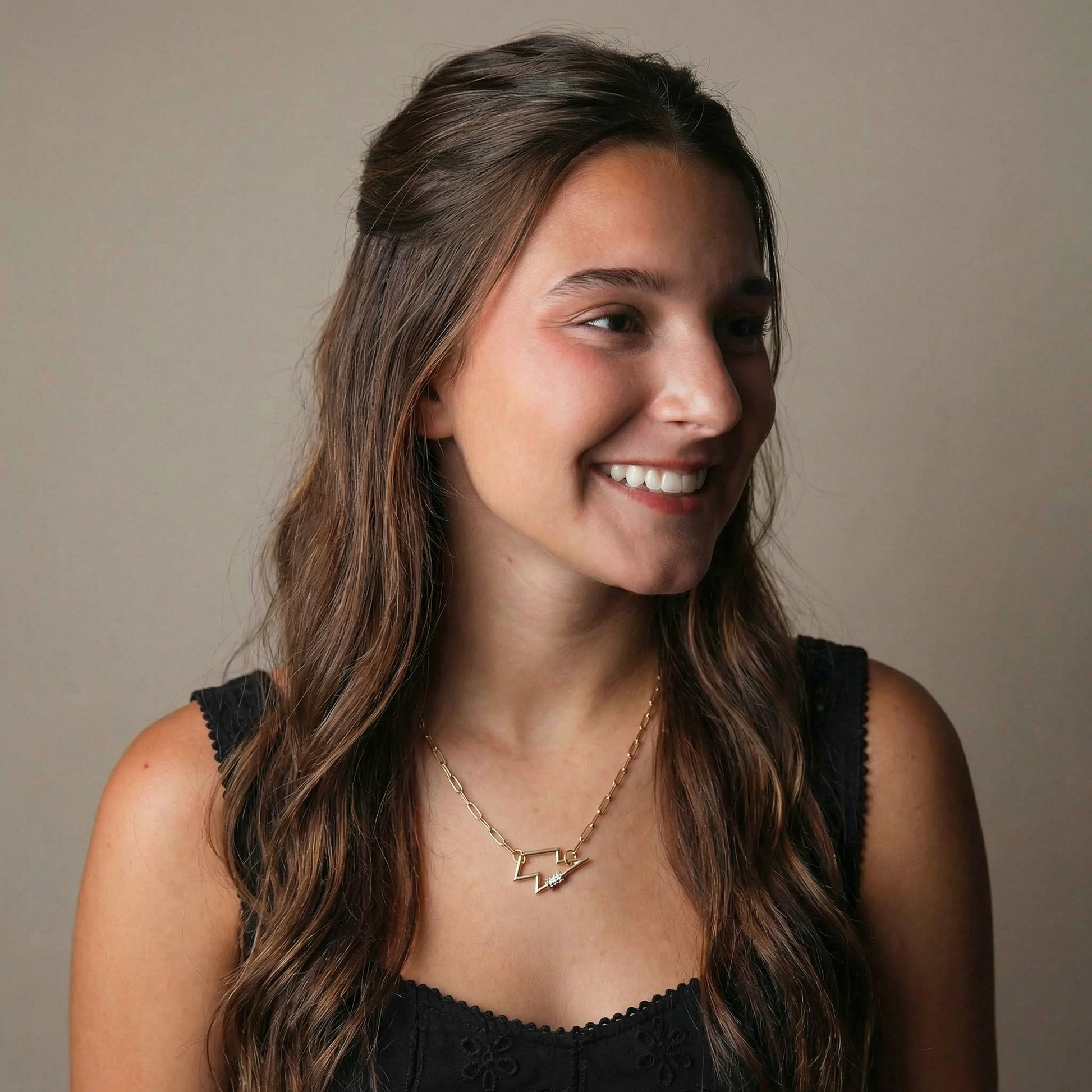16" Matte Gold Lightning Bolt Carabiner Necklace, 3" Ext
