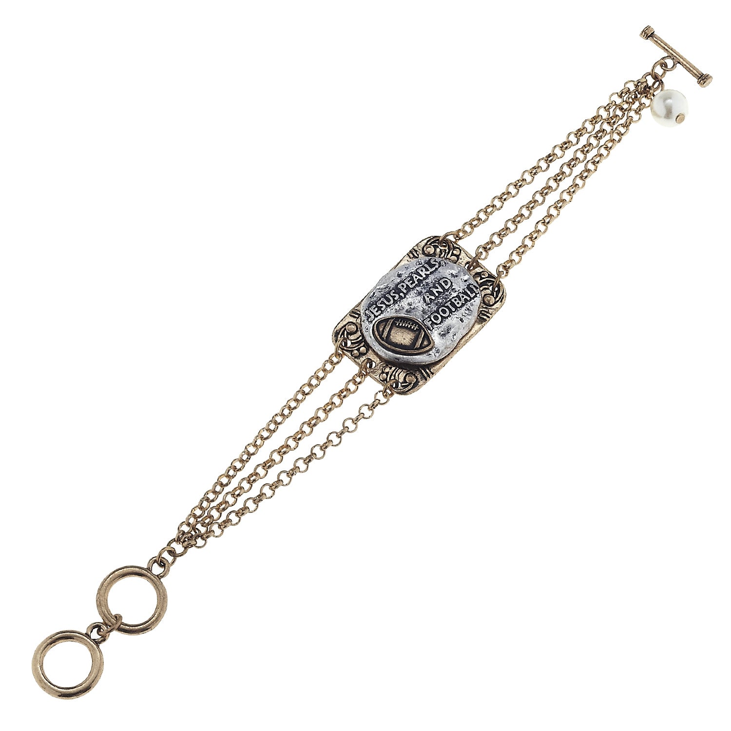2-Tone "Jesus, Pearls, and Football" Phrase Plate Toggle Bracelet