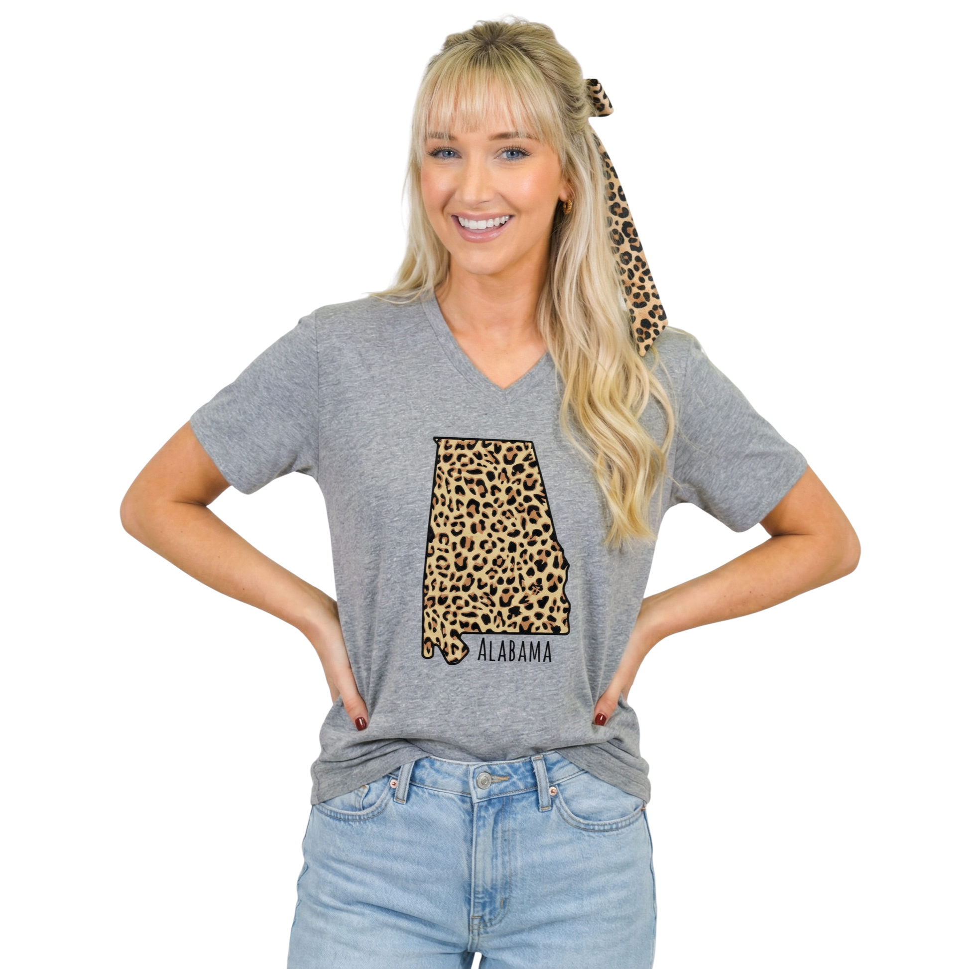 Alabama Leopard State Heather Light Grey V-Neck T-Shirt
