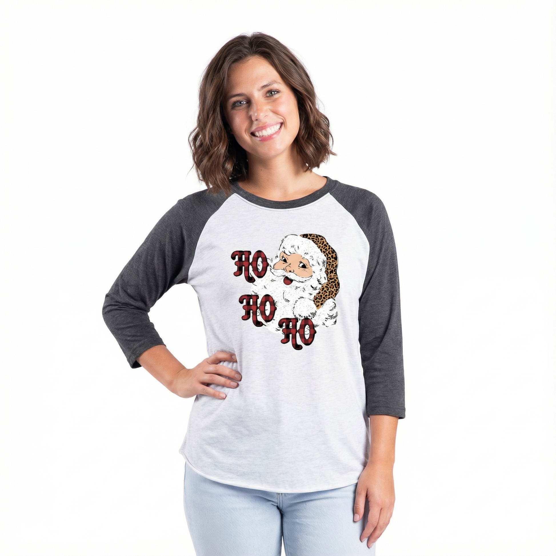 Ho Ho Ho Leoard Santa 3/4 Sleeve T-Shirt