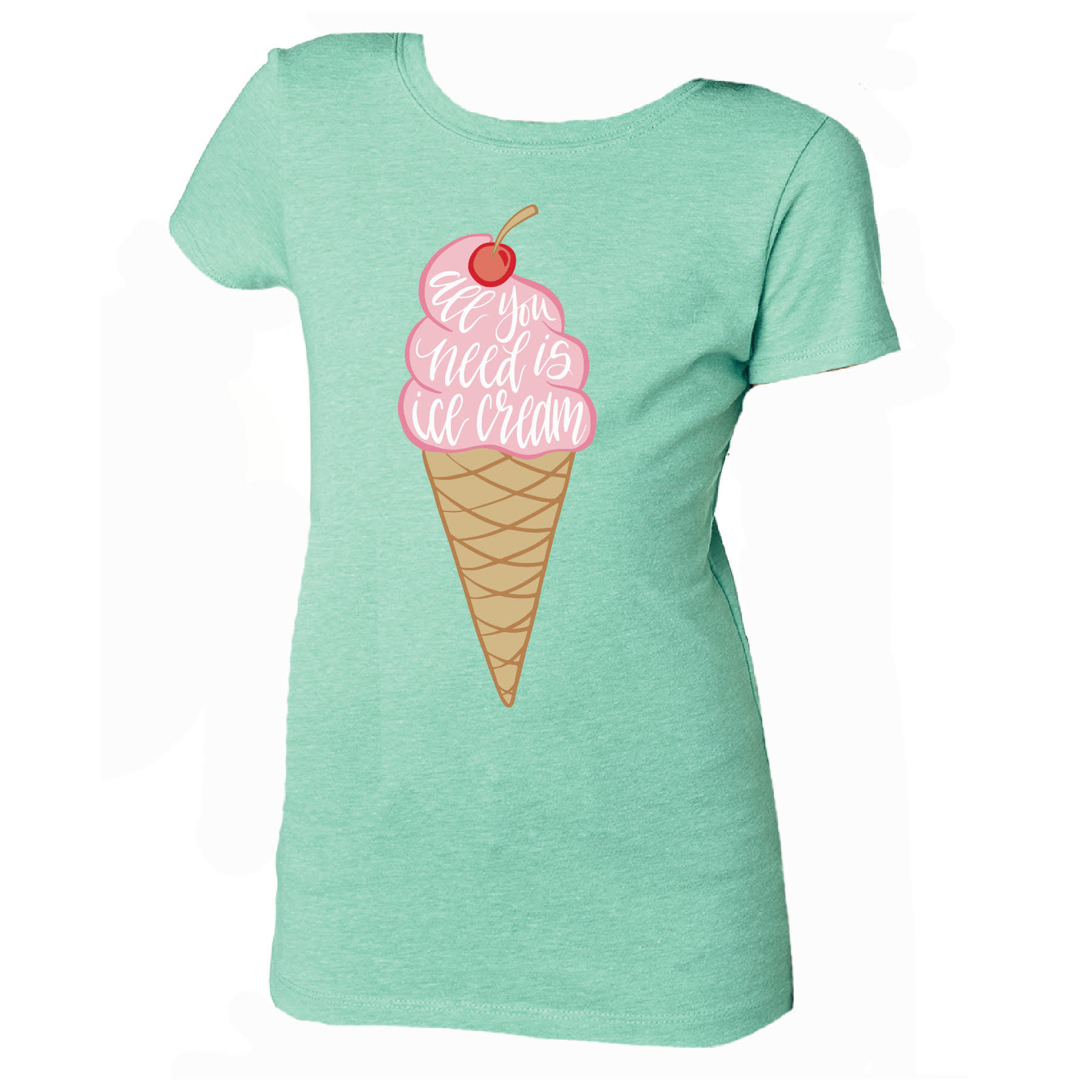 Kids All You Need Is Ice Cream Mint Crew Neck T-Shirt