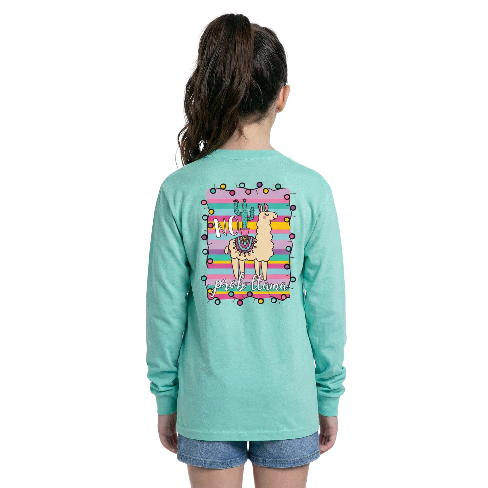 Kids No Probllama Long Sleeve T-Shirt - Seafoam Crew Neck Cotton Tee
