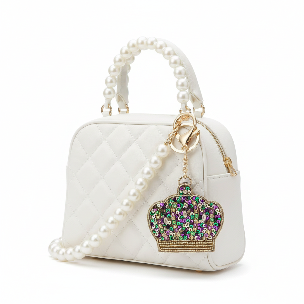 Whether you're organizing your keys, accessorizing your bag for a parade, or adding festive flair to your everyday tote, this sequined crown charm brings the spirit of Mardi Gras royalty to your daily routine. Makes a thoughtful gift for Fat Tuesday celebrations, New Orleans lovers, or anyone who appreciates sparkly, fun accessories.