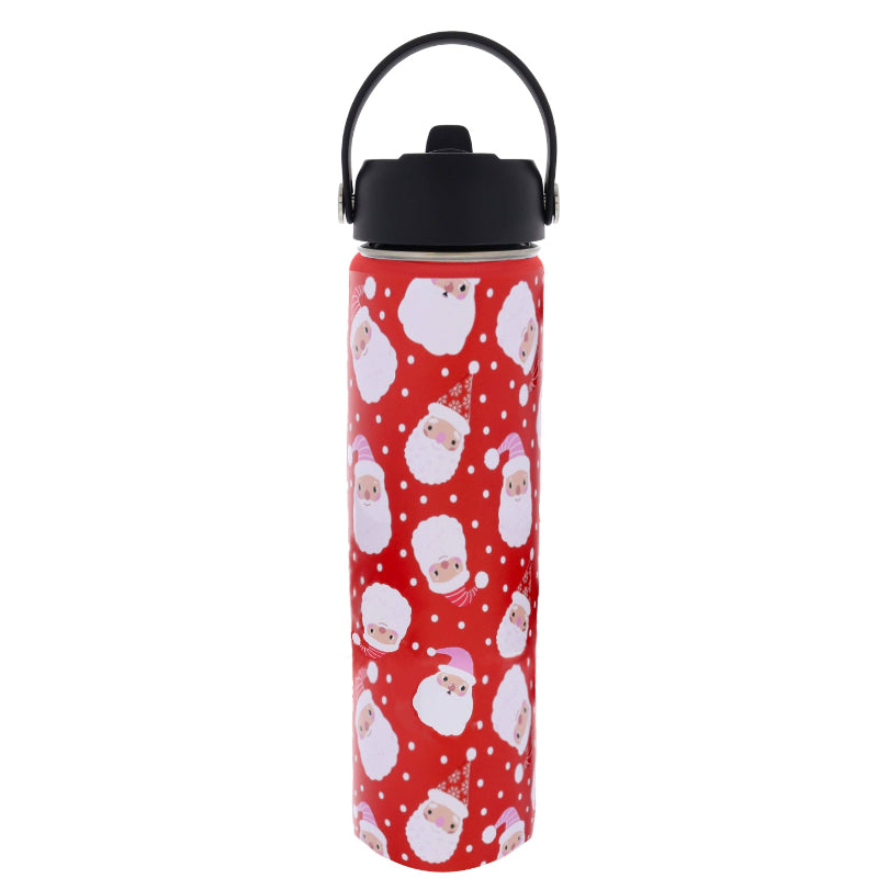 Celebrate the magic of the season with this charming The Most Wonderful Time of the Year 25 Oz. Skinny Bottle! This festive stainless steel bottle features an adorable pattern of Santa faces that brings holiday cheer to every sip, making it the perfect companion for all your seasonal celebrations.
